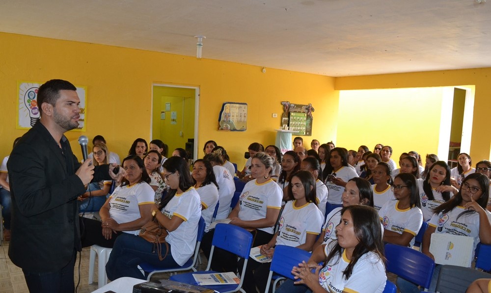 Após o almoço, fornecido pela Secretaria de Educação, o evento teve continuidade com a palestra do professor Diego Feitosa, com o tema “Resultados Extraordinários à gestão da aprendizagem na modernidade”. O educador abordou sobre diversas técnicas que devem ser utilizadas em sala de aula para um melhor rendimento dos alunos, como se atualizar com o momento vivido pelos jovens nos dias atuais, redes sociais, memes, jogos e outras atividades, que segundo o palestrante facilitam o aprendizado.