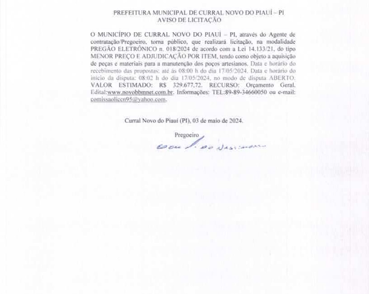 PREFEITURA MUNICIPAL DE CURRAL NOVO DO PIAUI