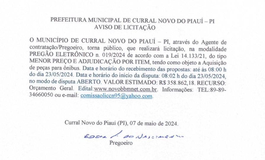 PREFEITURA MUNICIPAL DE CURRAL NOVO