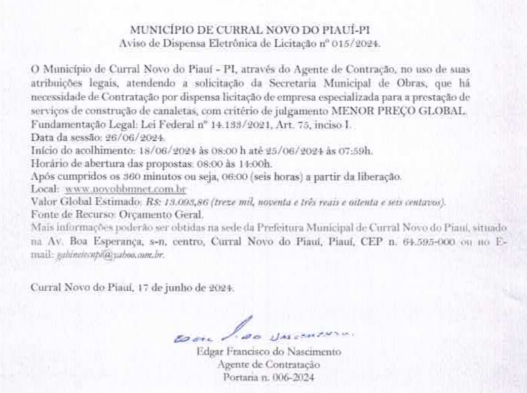 PREFEITUA MUNICIPAL DE CURRAL NOVO DO PIAUÍ