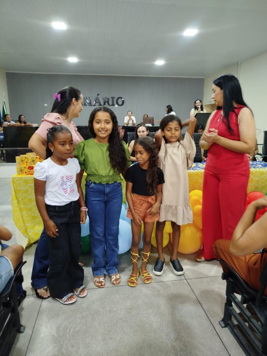 A cerimônia teve como objetivo homenagear alunos do 1º ao 9º ano que alcançaram aprendizagem adequada, nos componentes curriculares de Língua Portuguesa e Matemática, simultaneamente, em pelo menos dois dos três diagnósticos realizados pela consultoria pedagógica do município.