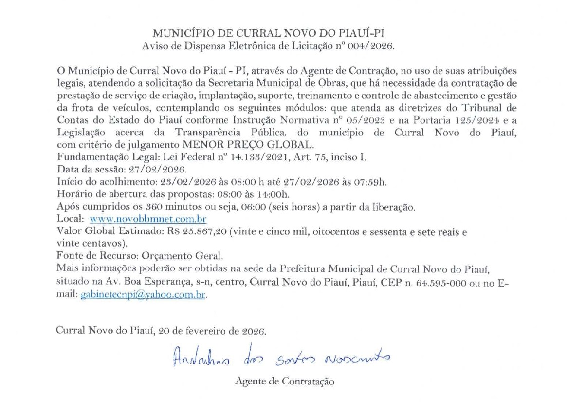 PREFEITURA MUNICIPAL DE CURRAL NOVO DO PIAUI