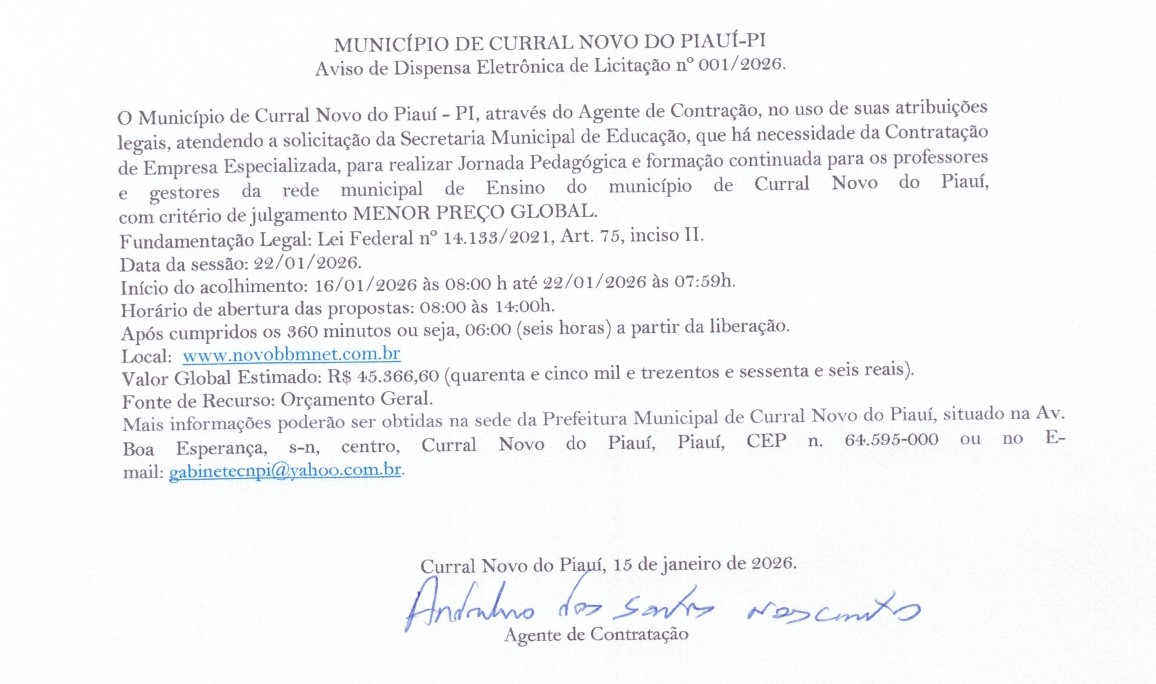 PREFEITURA MUNICIPAL DE CURRAL NOVO DO PIAUÍ