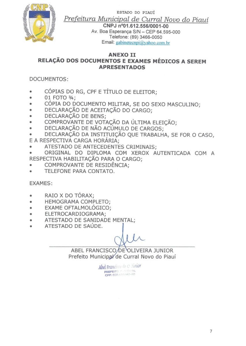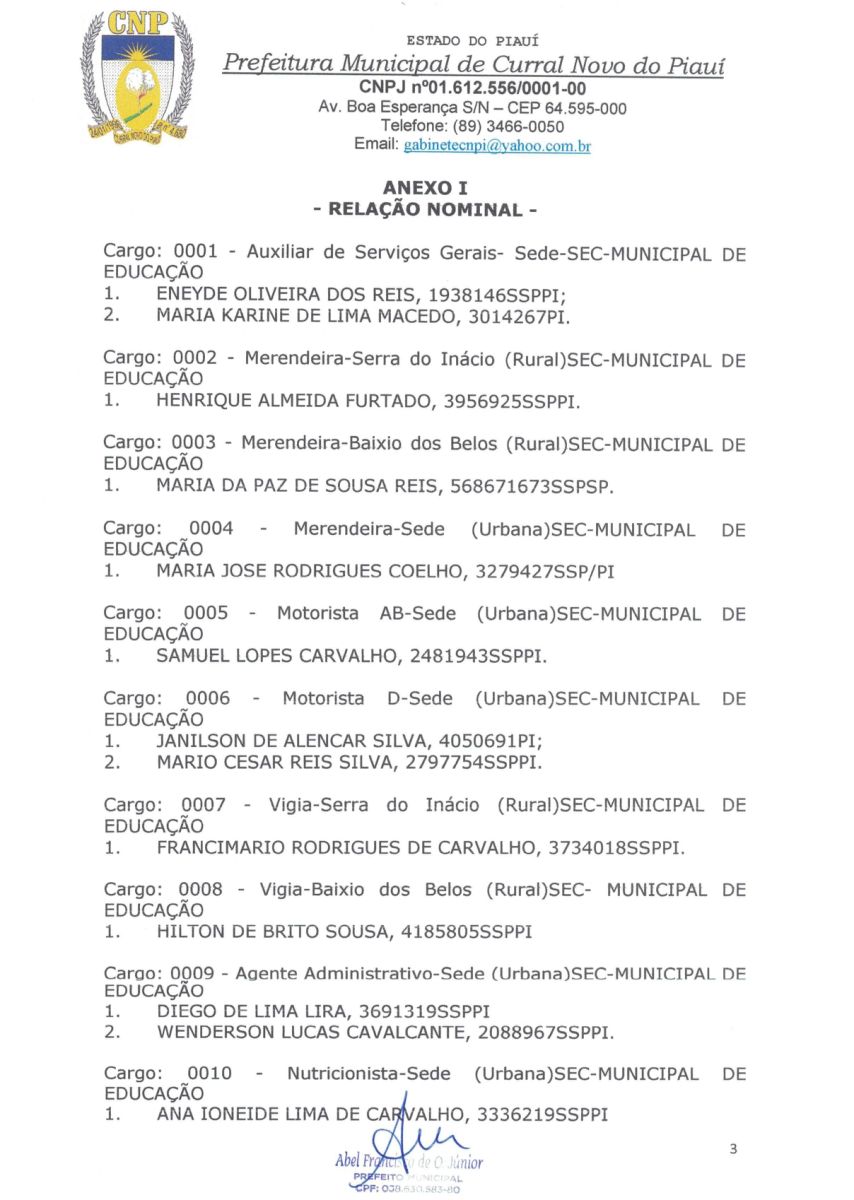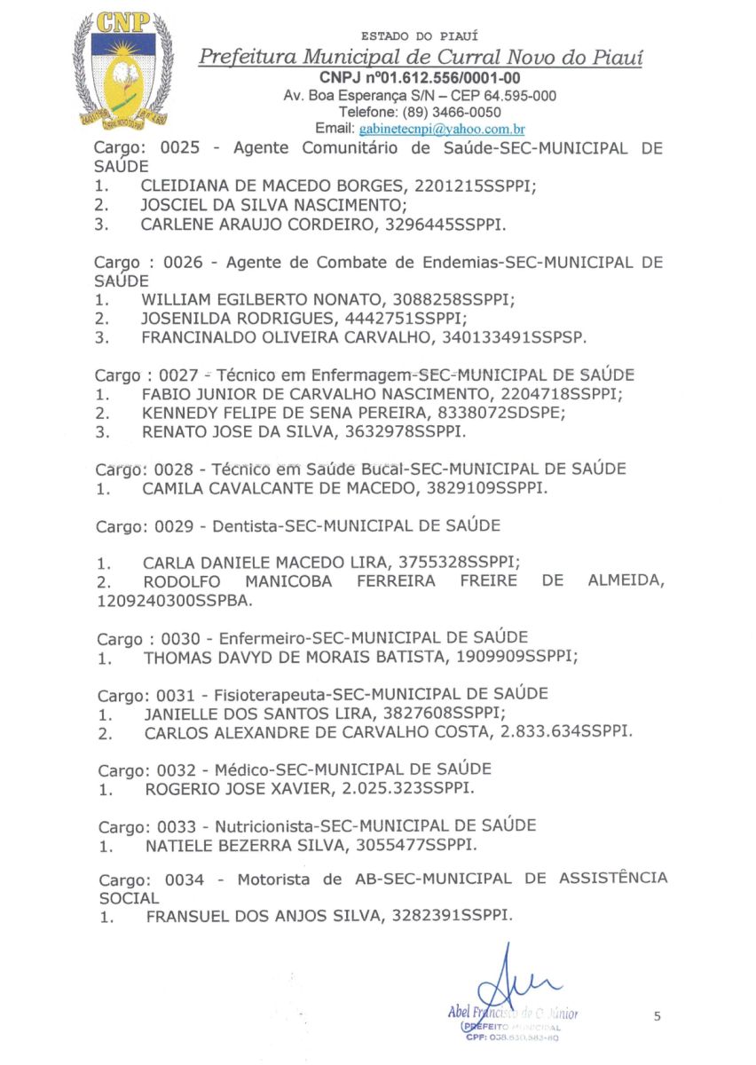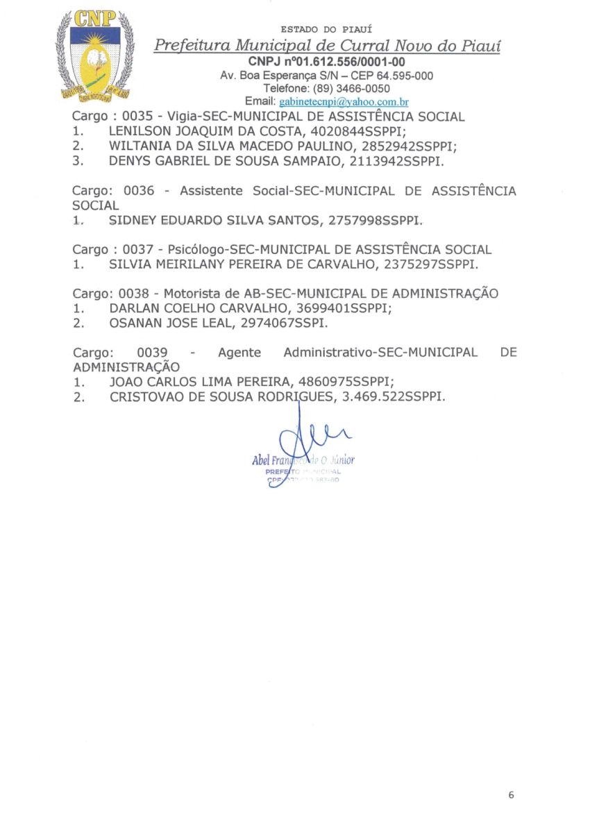A PREFEITURA MUNICIPAL DE CURRAL NOVO DO PIAUI CONVOCA OS CANDIDATOS APROVADOS EM CONCURSO PÚBLICO Nº 001/2022.