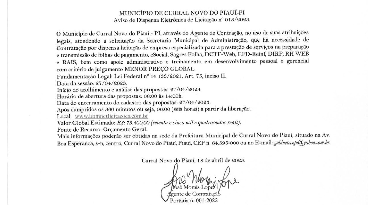 PREFEITURA MUNICIPAL DE CURRAL NOVO DO PIAUÍ