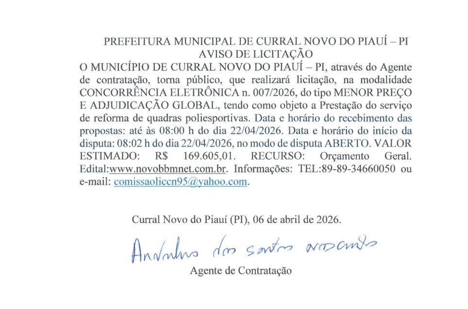 PREFEITURA MUNICIPAL DE CURRAL NOVO DO PIAUÍ
