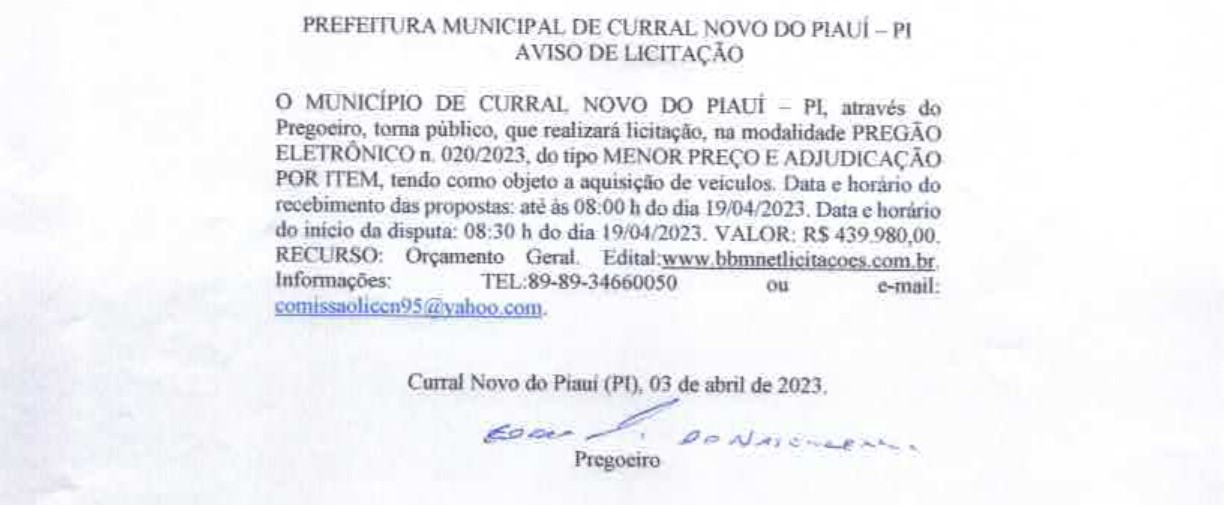 PREFEITURA MUNICIPAL DE CURRAL NOVO DO PIAUÍ