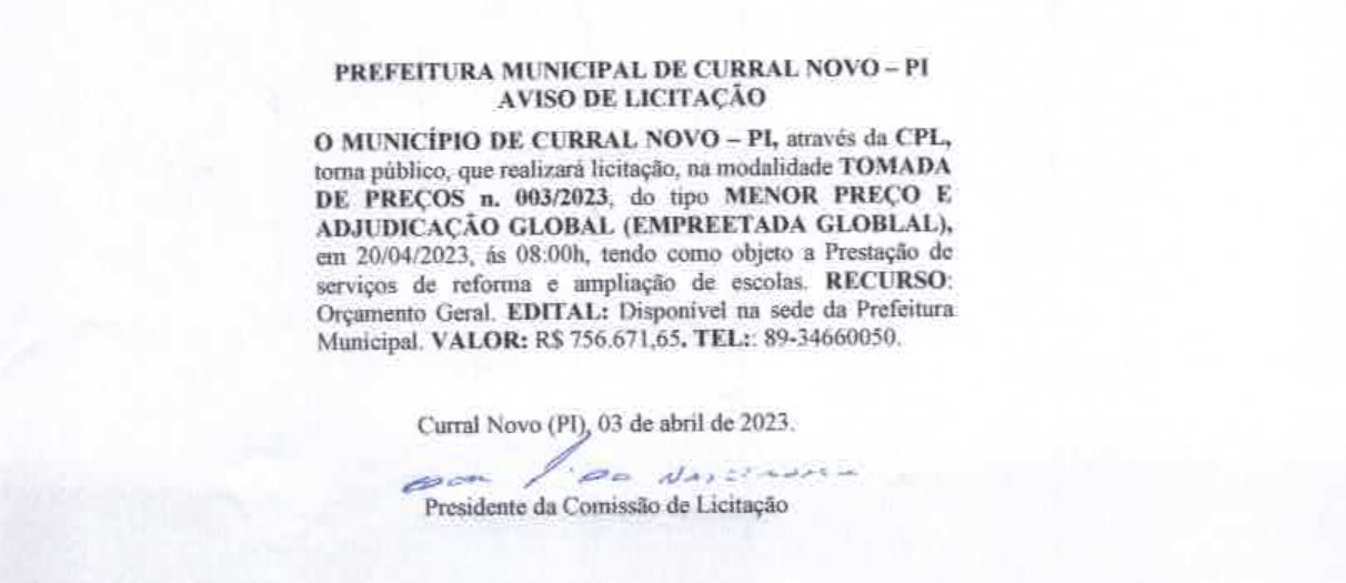 PREFEITURA MUNICIPAL DE CURRAL NOVO DO PIAUÍ